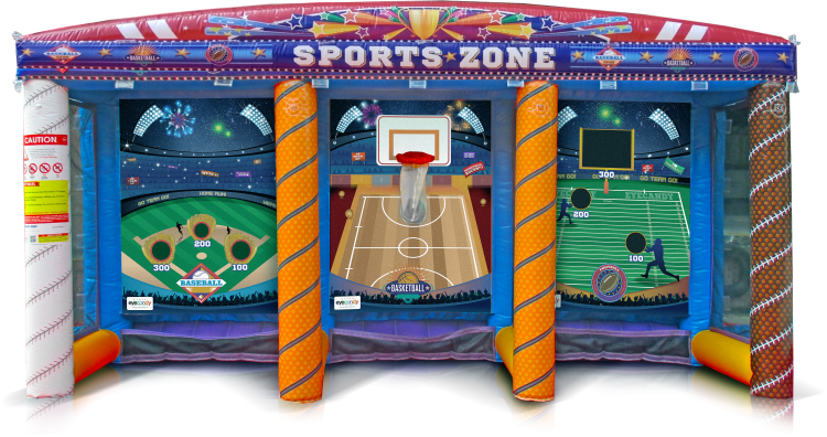 Bring the excitement of three classic sports to your next event with our 3-in-1 Sports Zone Inflatable Game! This interactive inflatable party rental features Baseball, Basketball, and Football all in one dynamic unit, making it the perfect attraction for corporate events, school fun fairs, community festivals, birthday parties, and team-building activities.